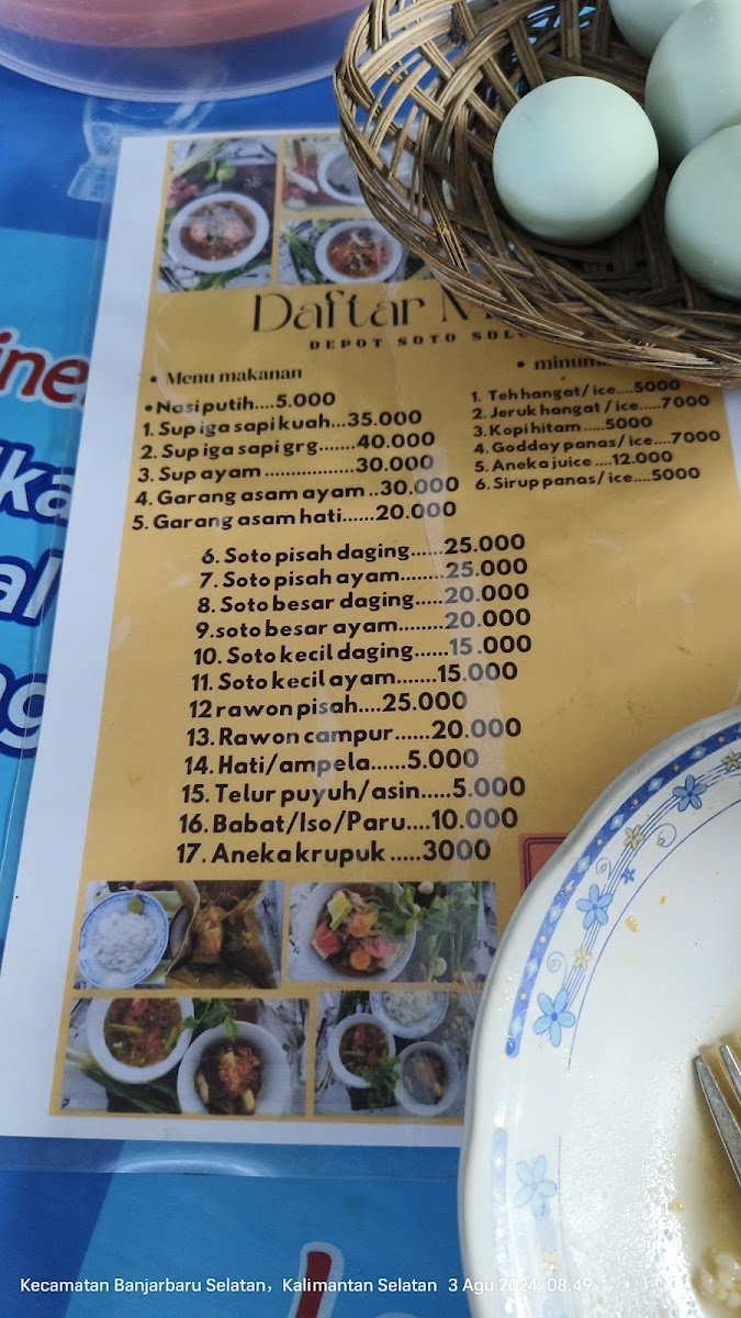 Welcome to Stasiun Soto, a Javanese gem nestled in Banjarbaru City, South Kalimantan. This inviting eatery specializes in Soto, particularly the famed Soto Boyolali, renowned for its flavorful, clear broth that sings with a delightful umami essence. Patrons rave about the rich taste and the generous portions, making it an ideal choice for both breakfast and lunch.